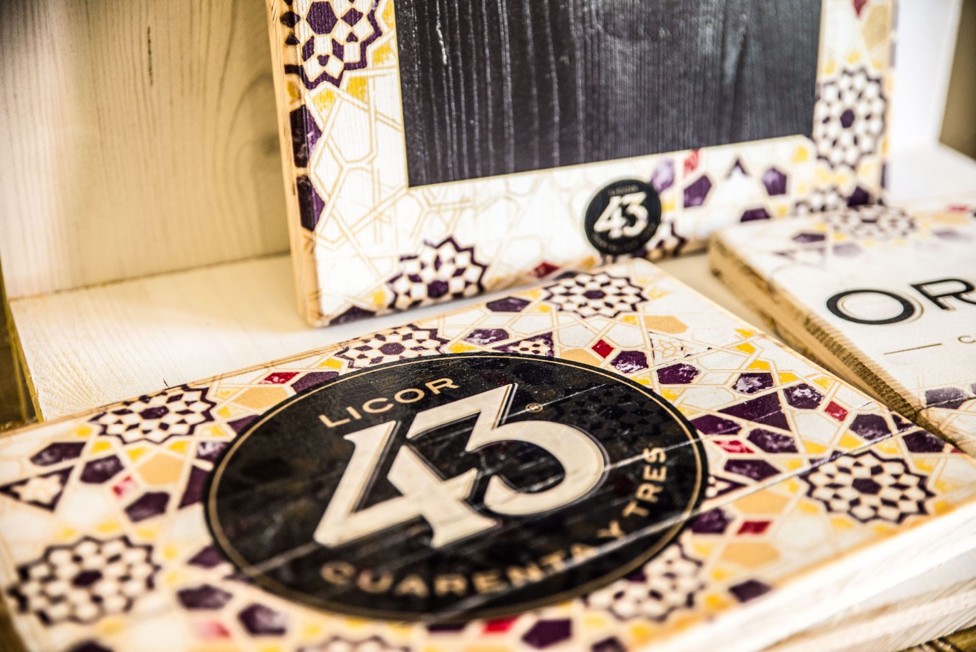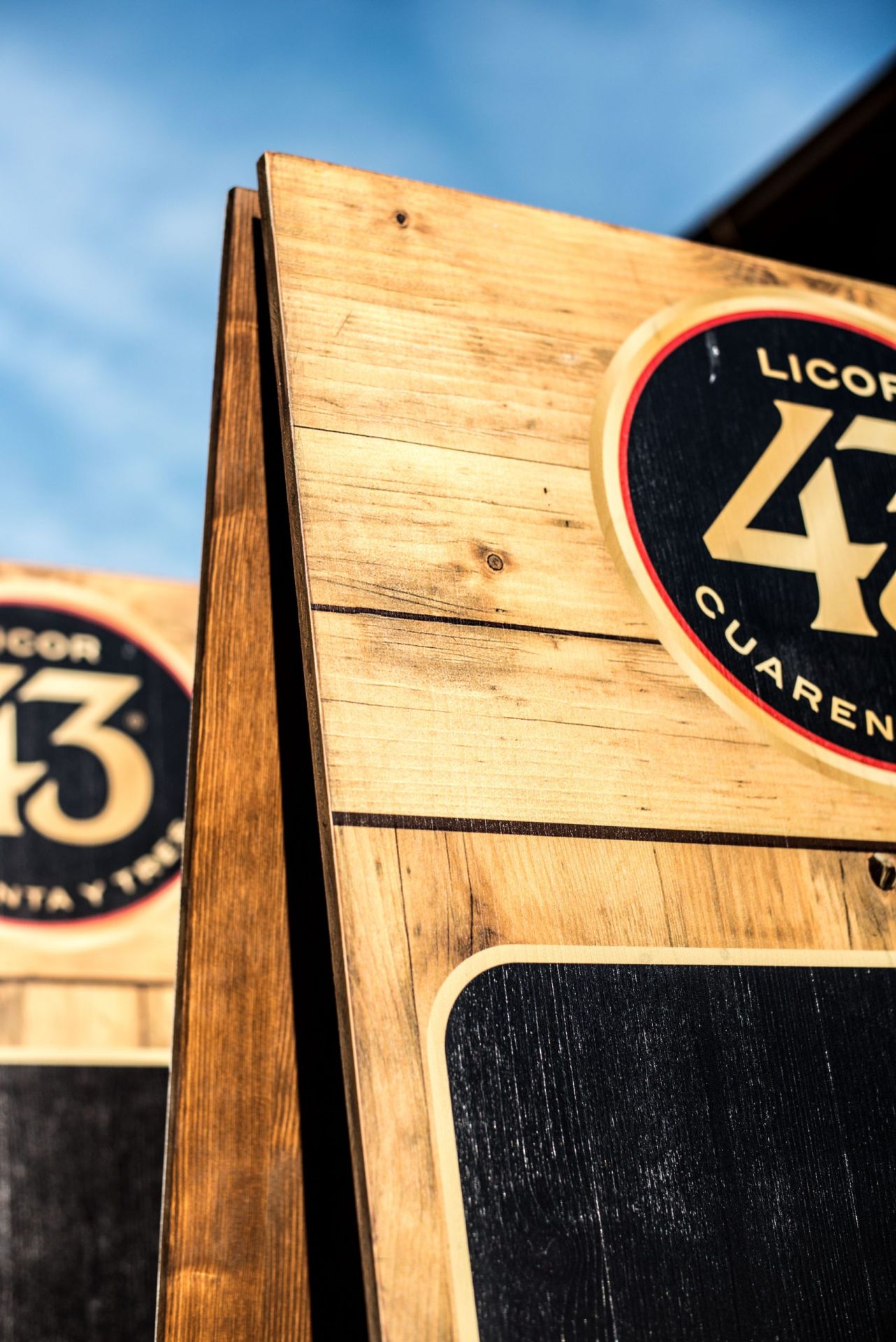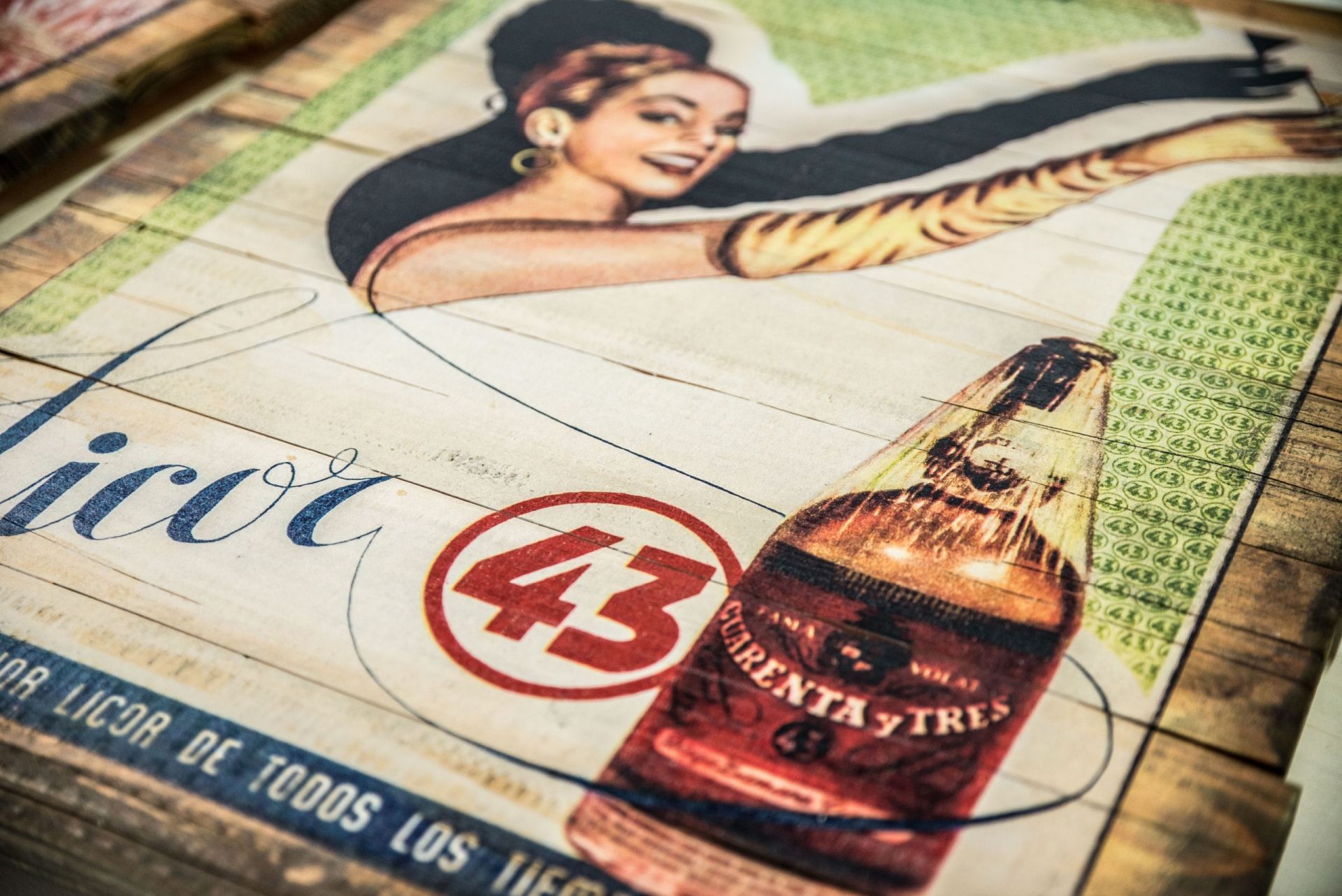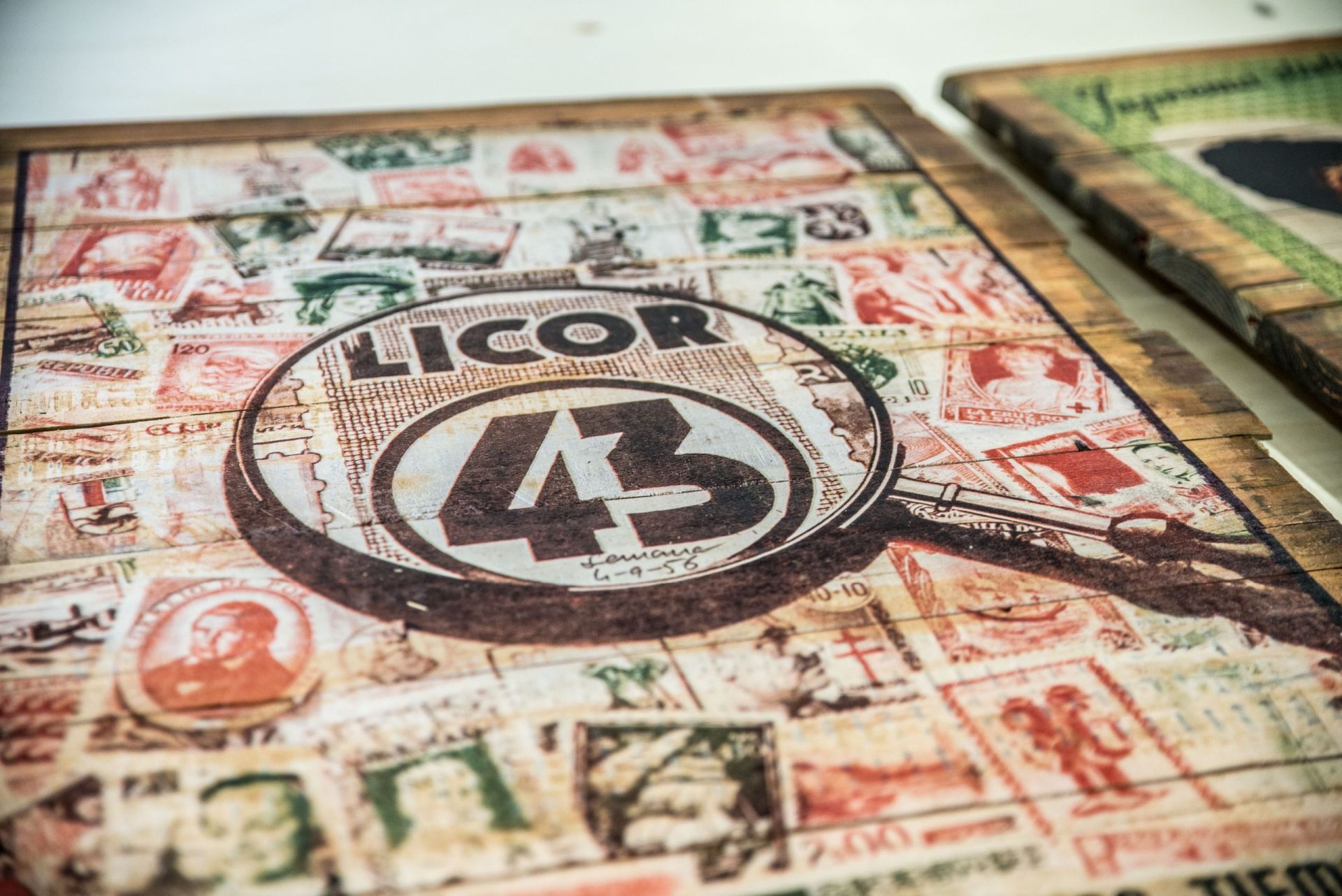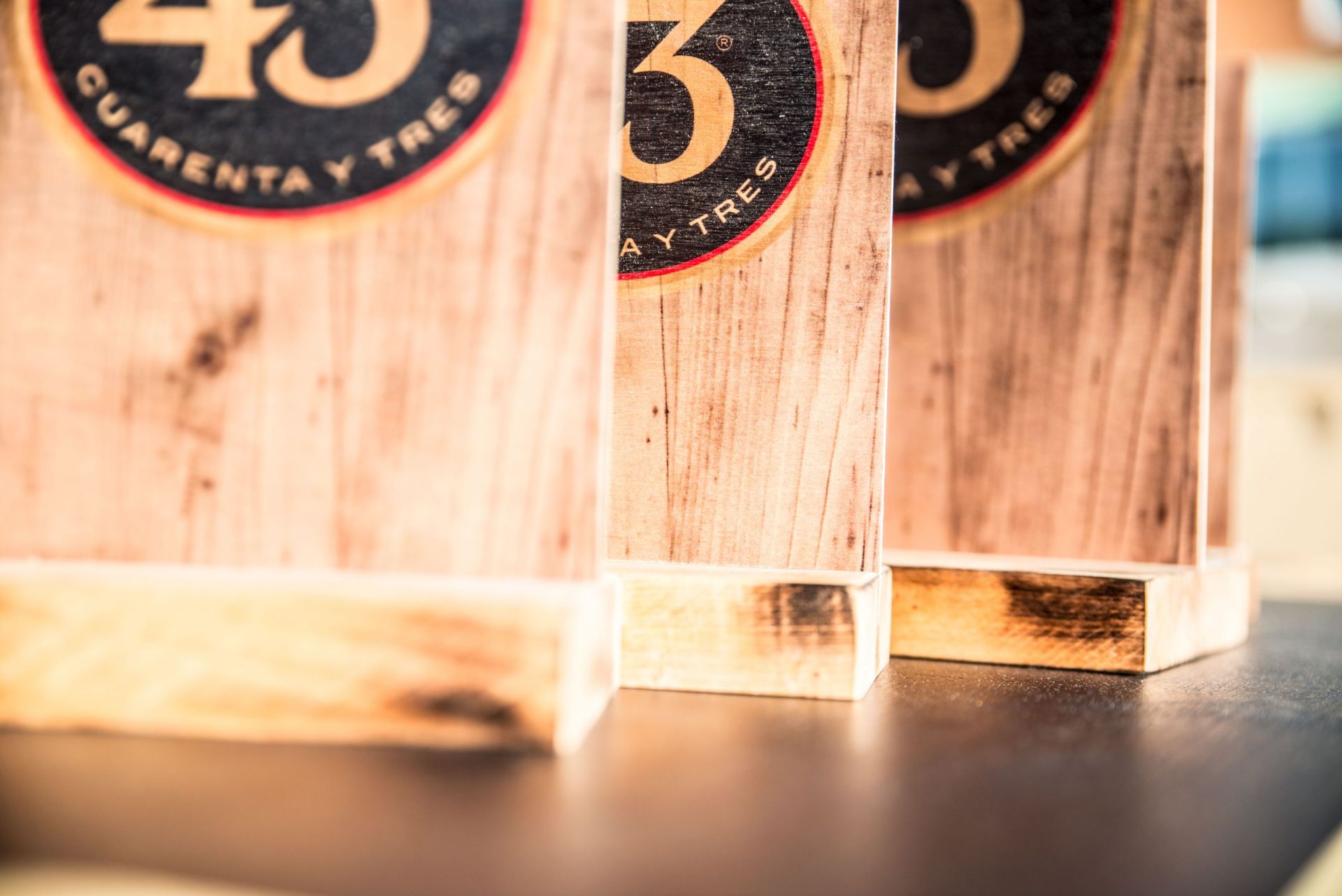 Farbig bedruckte Holztafeln: Logo Licor 43