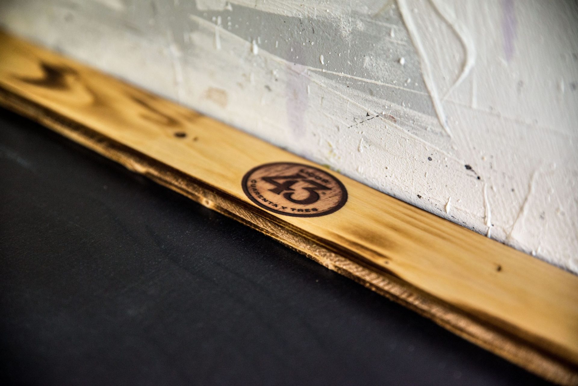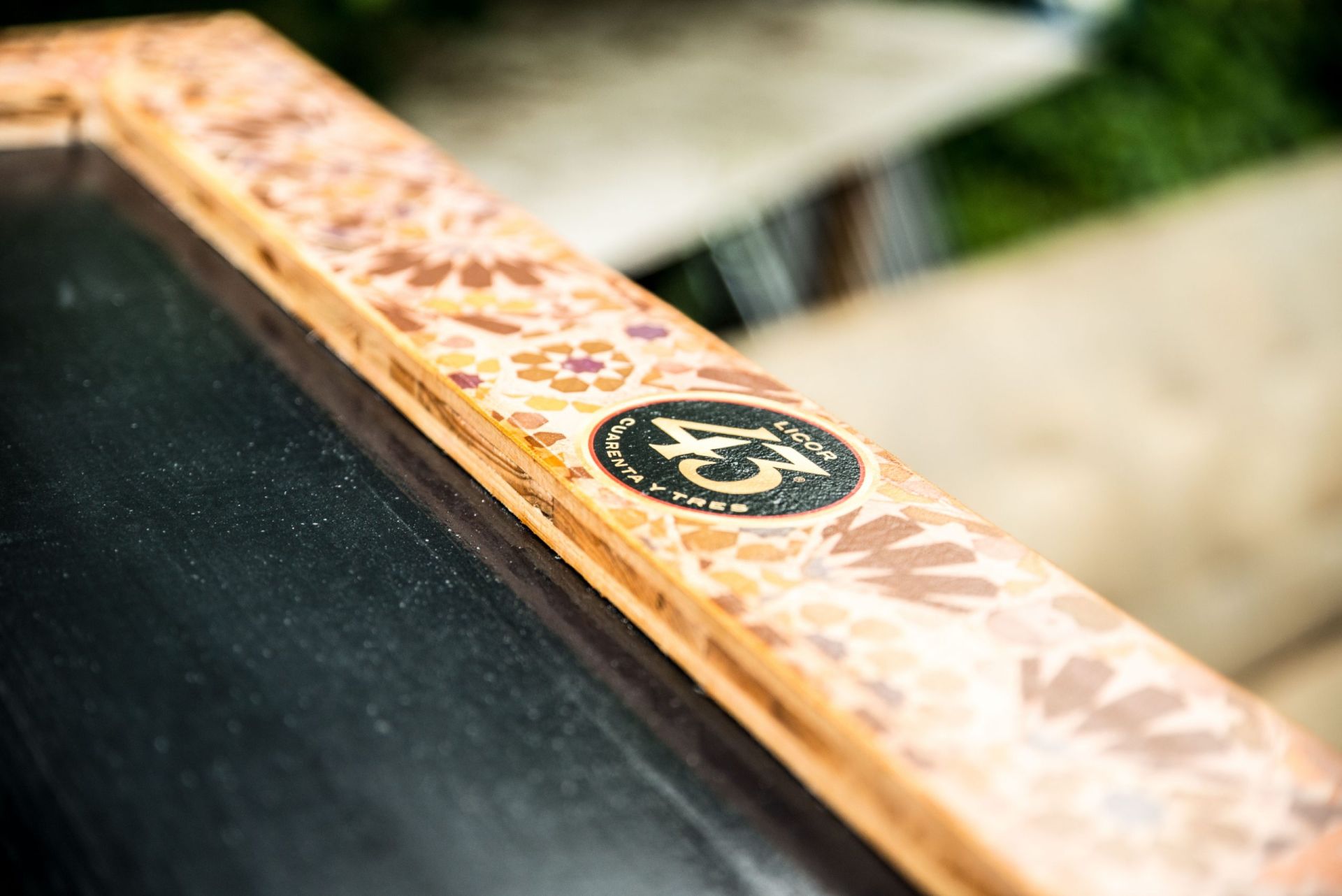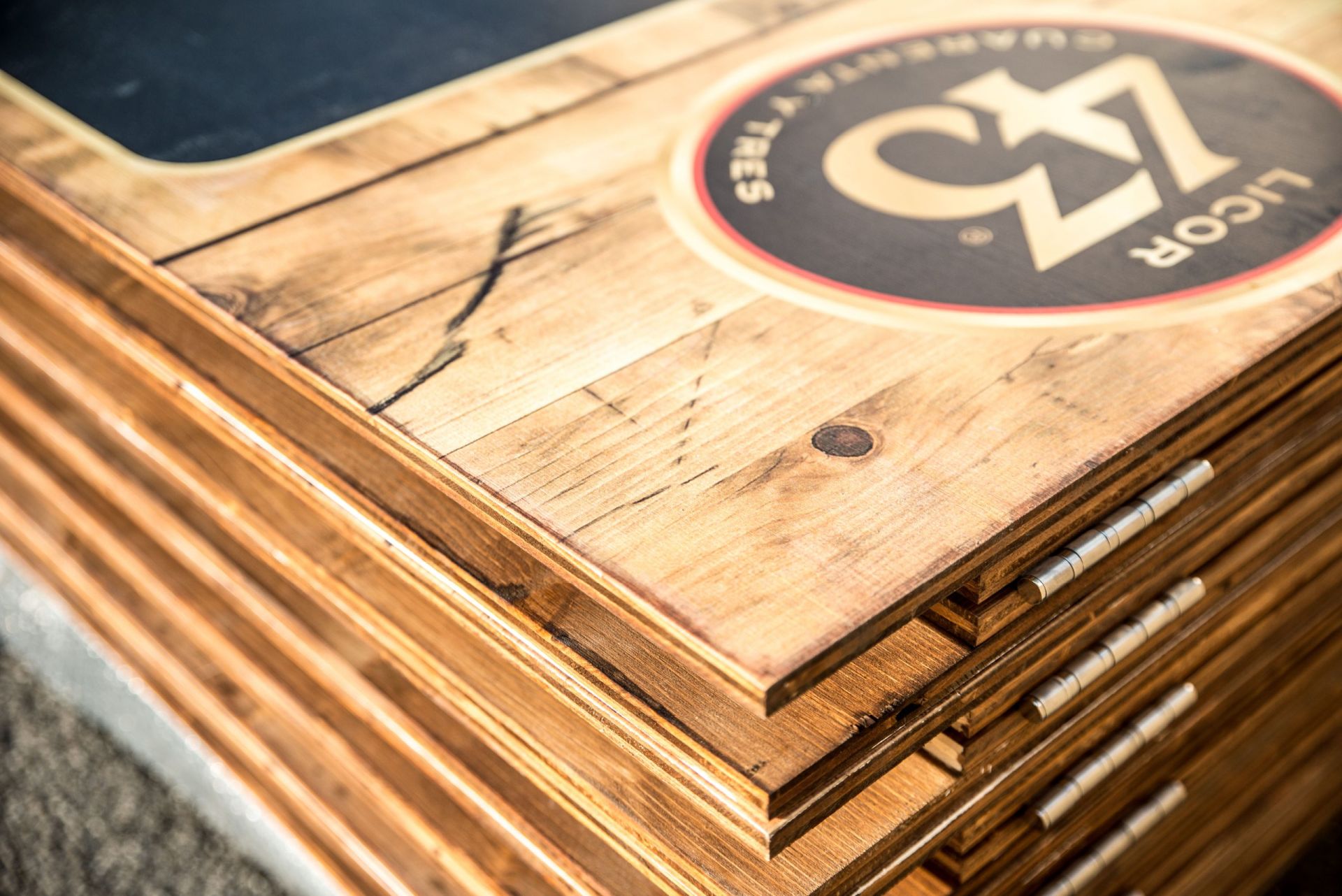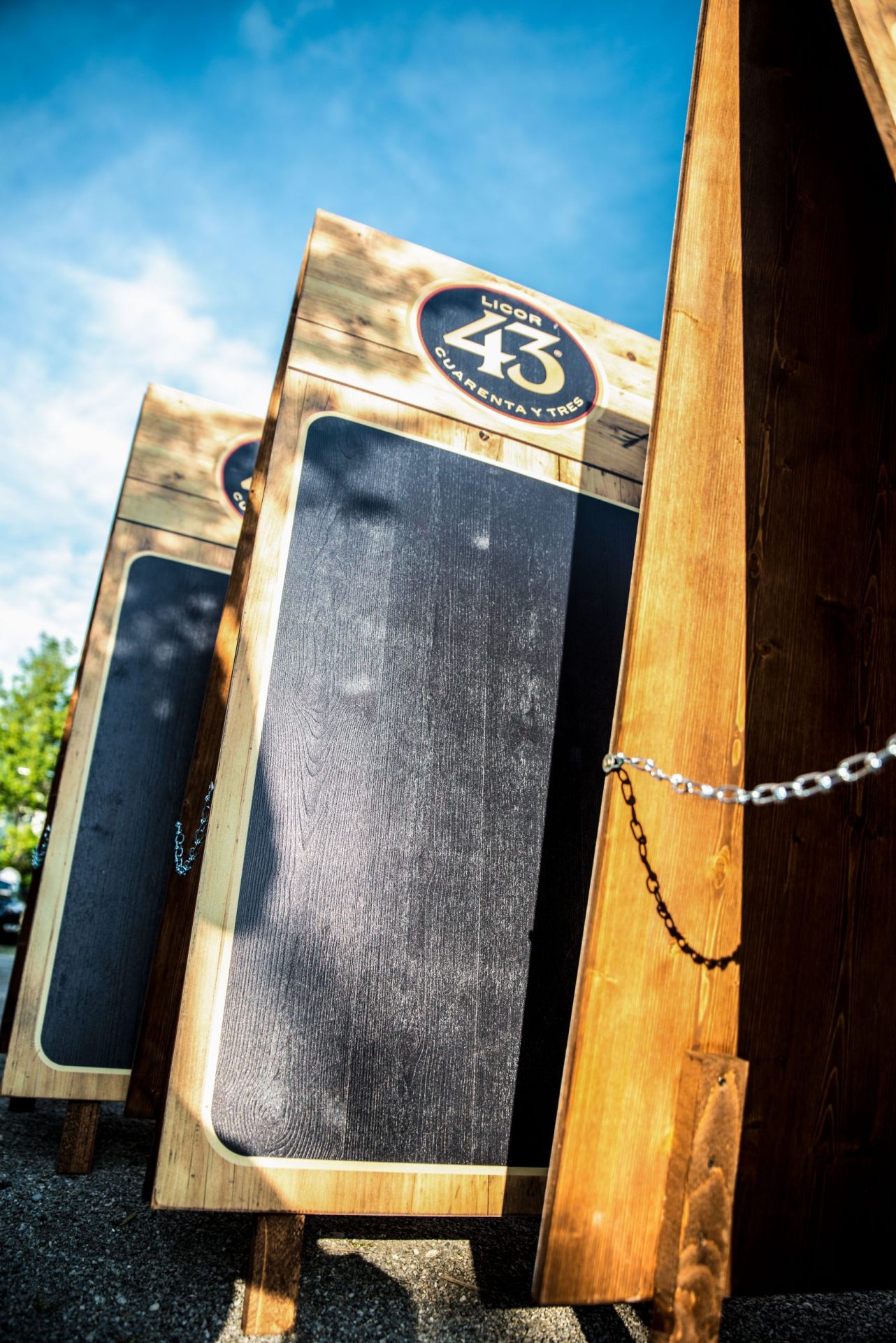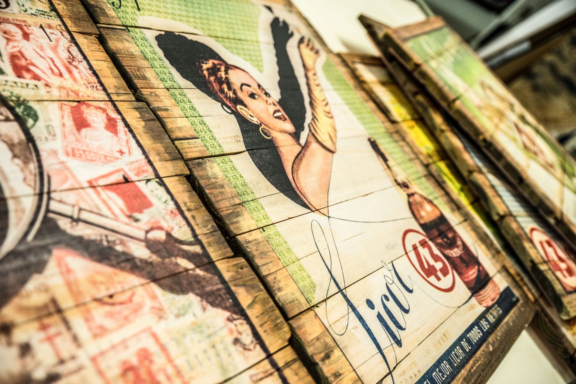 Farbig bedruckte Holztafeln: Logo Licor 43