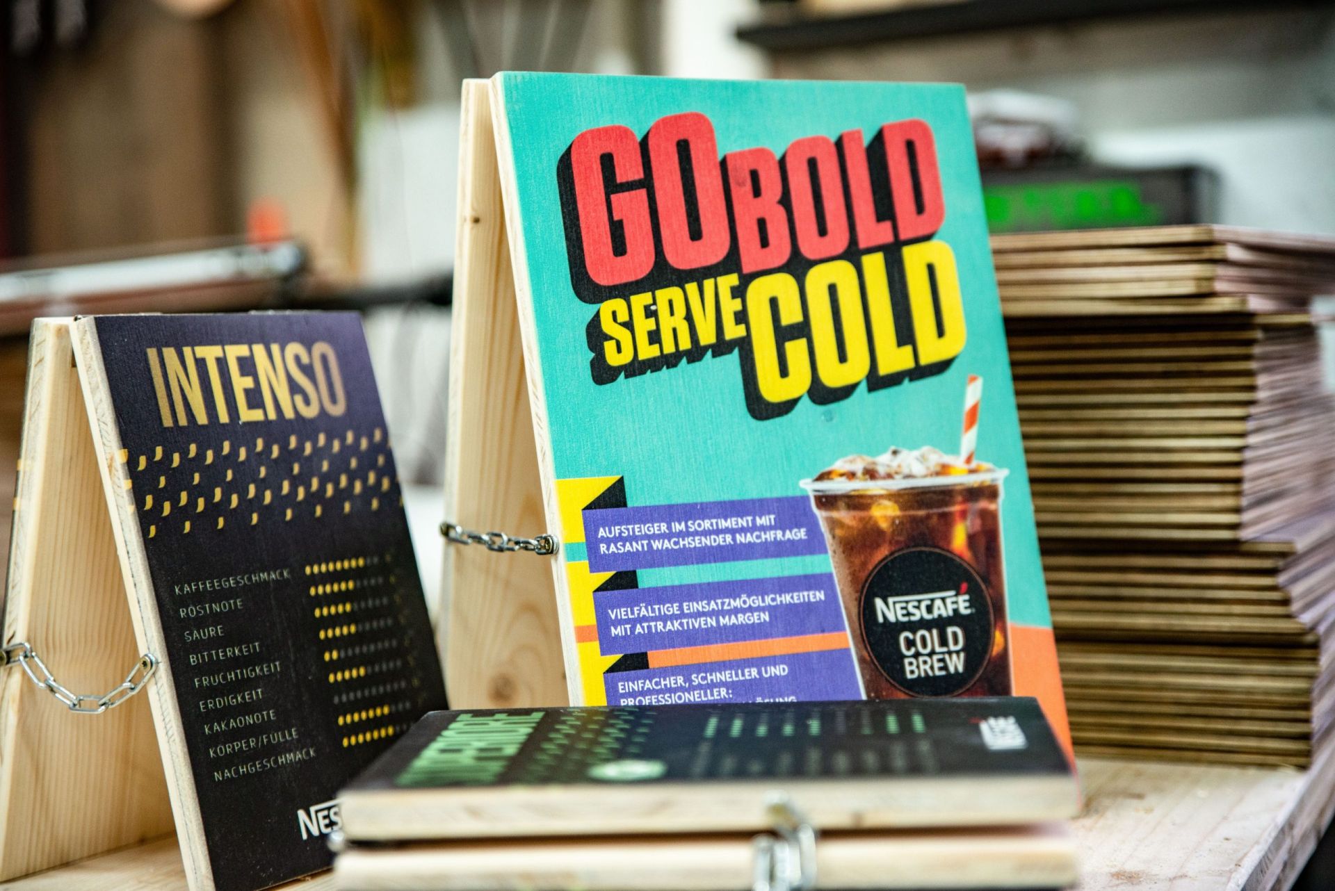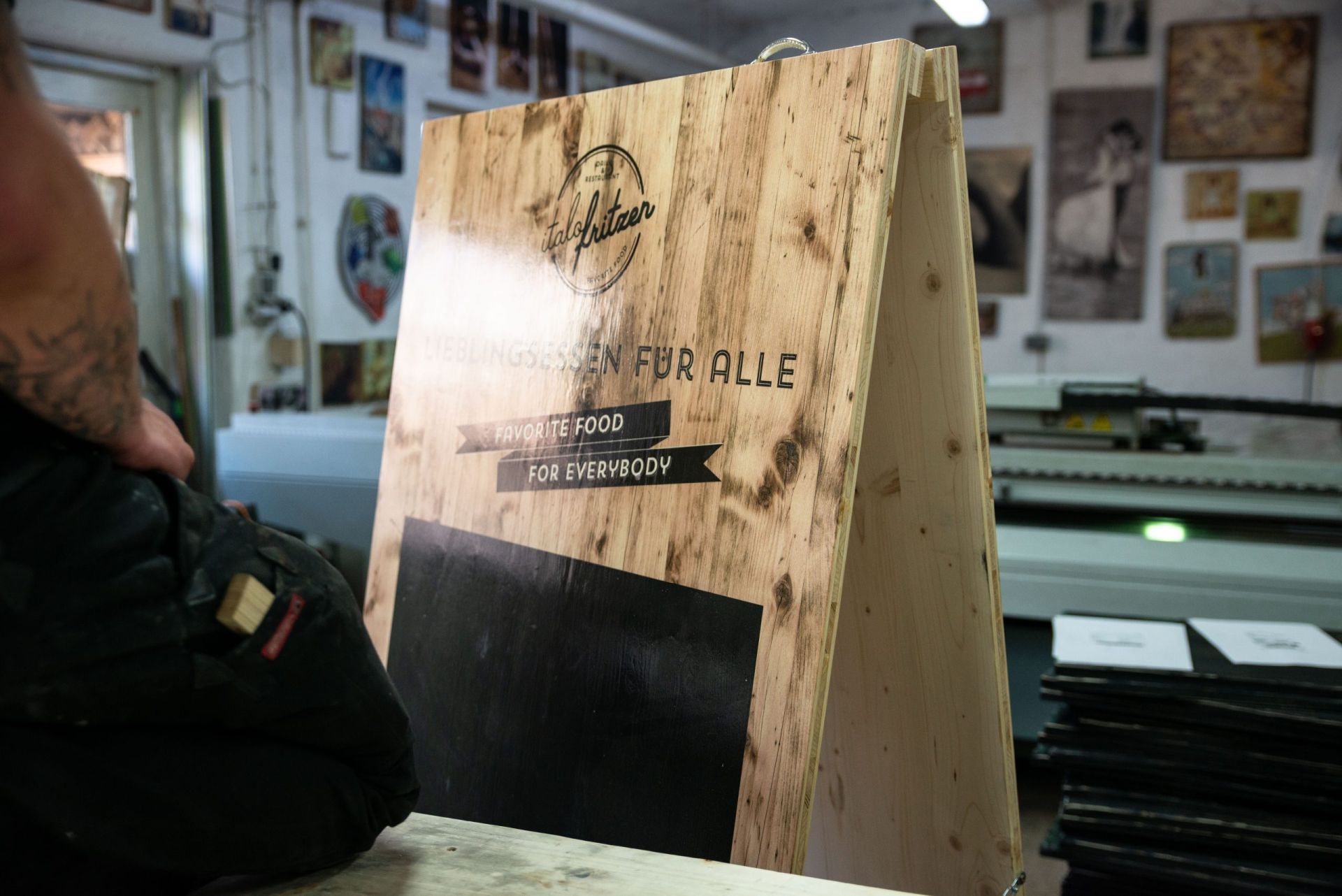 Unsere individuellen Holzaufsteller fertigen wir nach Ihrem Wunsch an. Sowohl das Format als auch die Bearbeitung des Holzes sind bei unseren Kundenstoppern frei bestimmbar. Vom kleinen Aufsteller für die Theke bis zum großen Aufsteller für die Strasse ist jedes Format möglich.