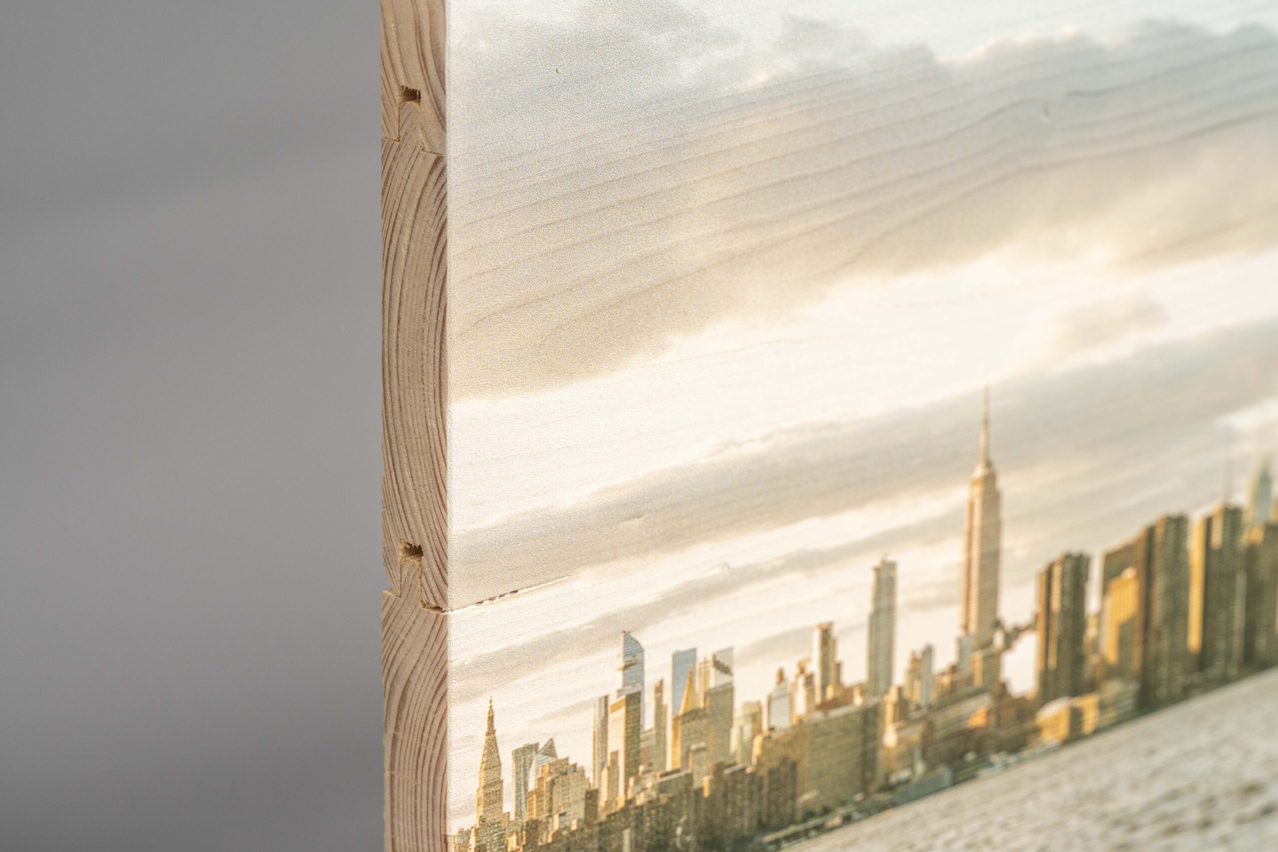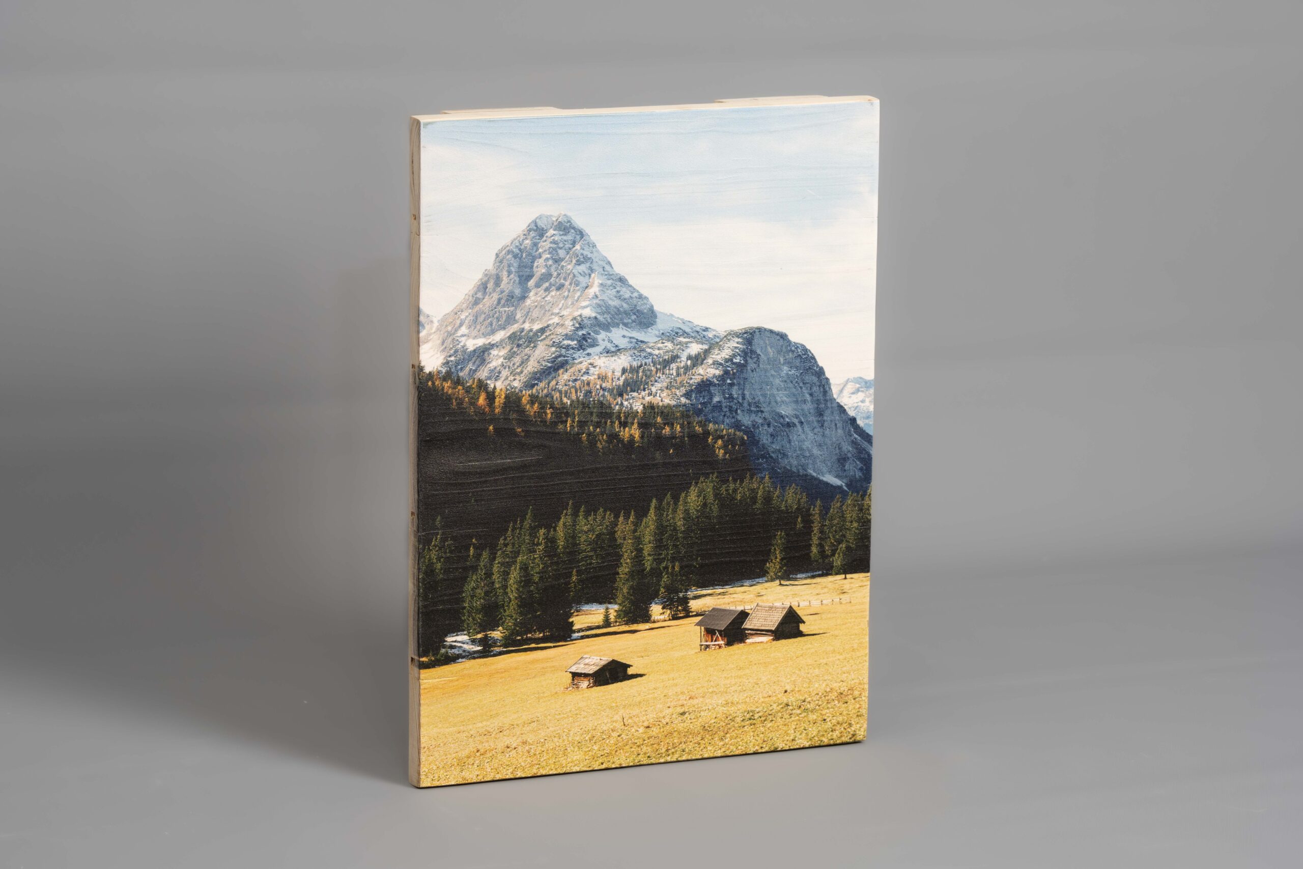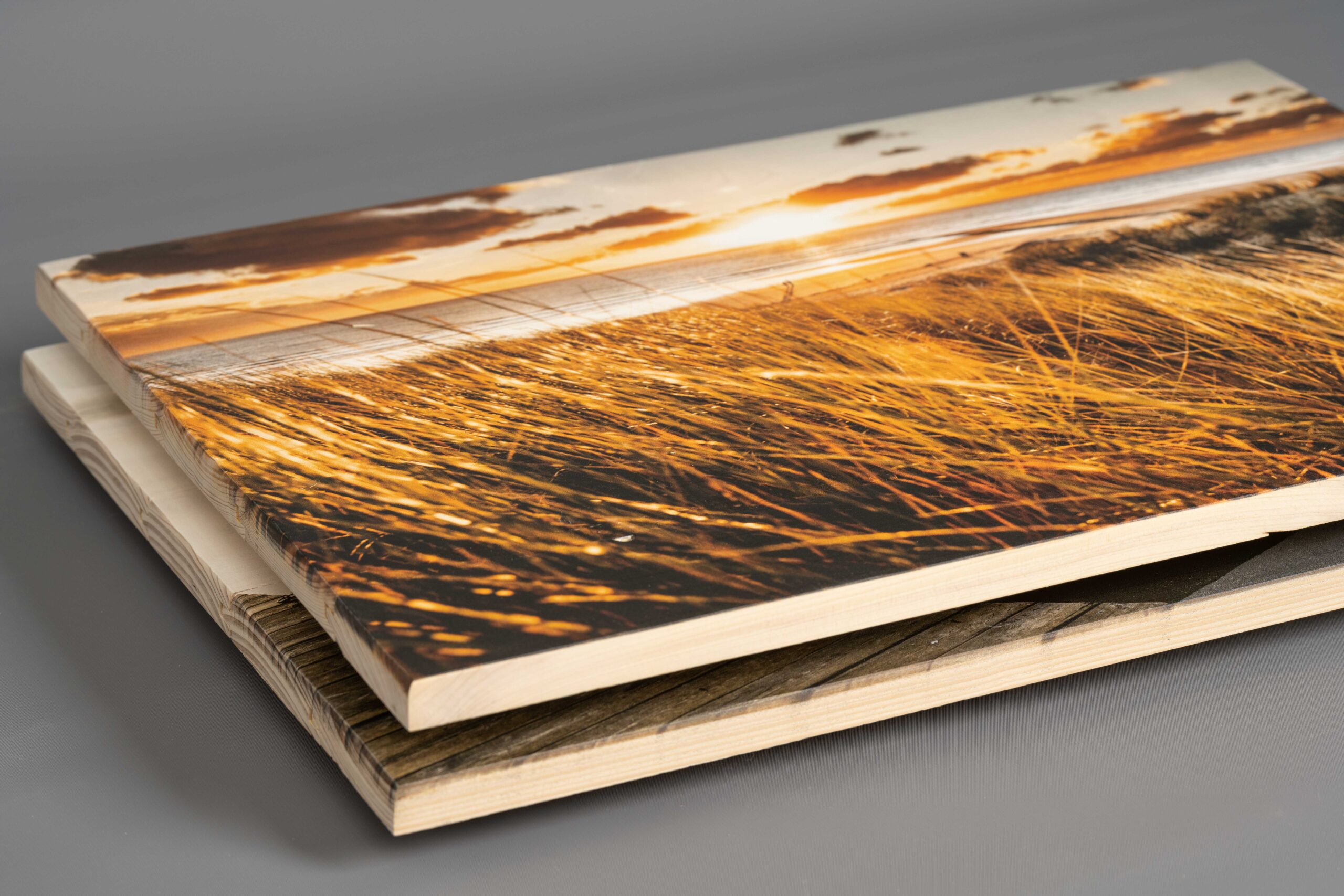Beim Druck auf neue Holzlatten besteht das Werkstück aus miteinander verschraubten Brettern oder Latten. Im Gegensatz zu den Altholz-Latten entstehen bei diesen abgeschliffenen und fein aufeinander abgerichteten Latten weniger große Lücken, dadurch eignet sich diese Druck-Variante hervorragend für feingliedrige Motive. Weitere Ideen zu Bildern auf neuen Holzlatten findest du auch hier.