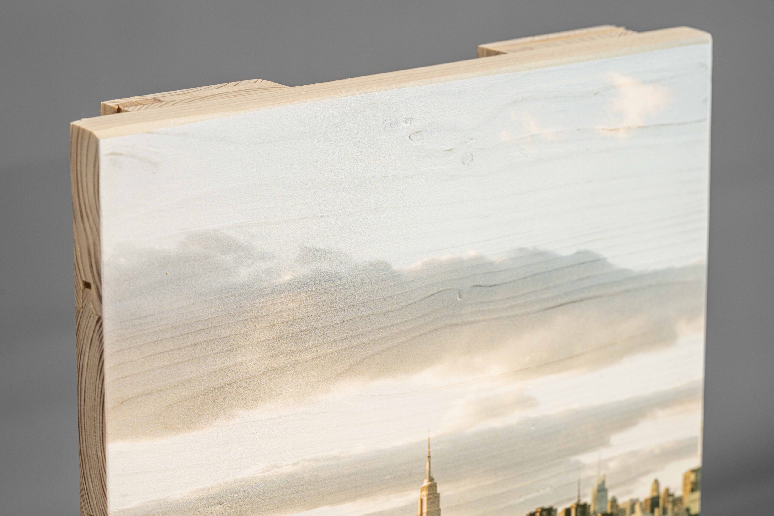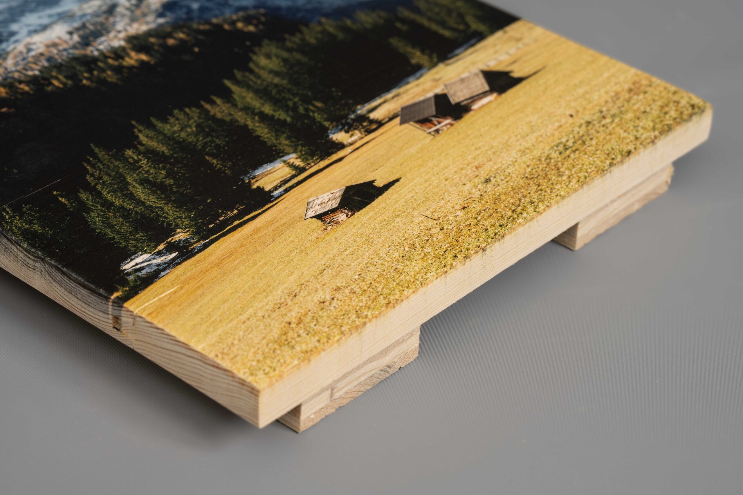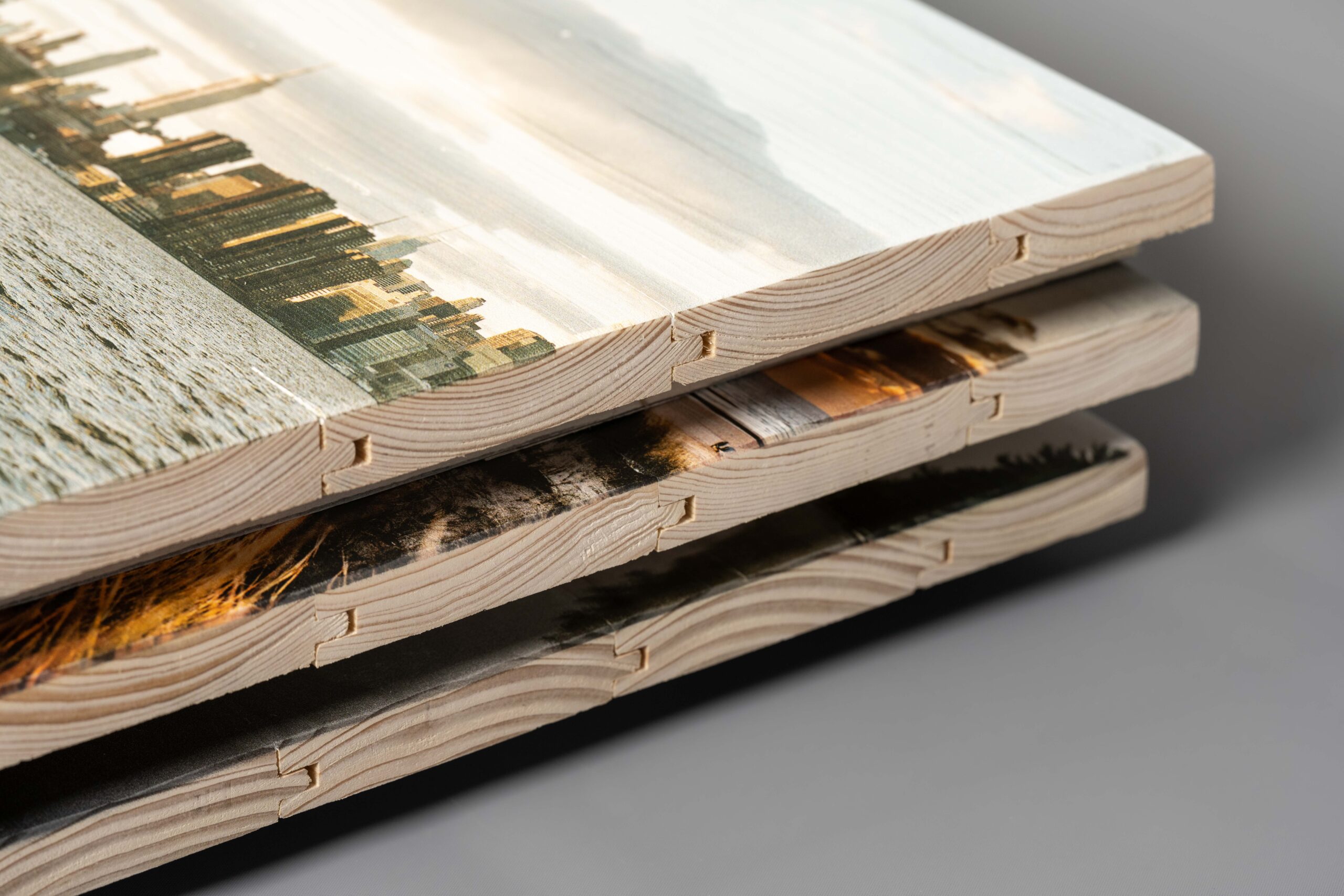 Beim Druck auf neue Holzlatten besteht das Werkstück aus miteinander verschraubten Brettern oder Latten. Im Gegensatz zu den Altholz-Latten entstehen bei diesen abgeschliffenen und fein aufeinander abgerichteten Latten weniger große Lücken, dadurch eignet sich diese Druck-Variante hervorragend für feingliedrige Motive. Weitere Ideen zu Bildern auf neuen Holzlatten findest du auch hier.