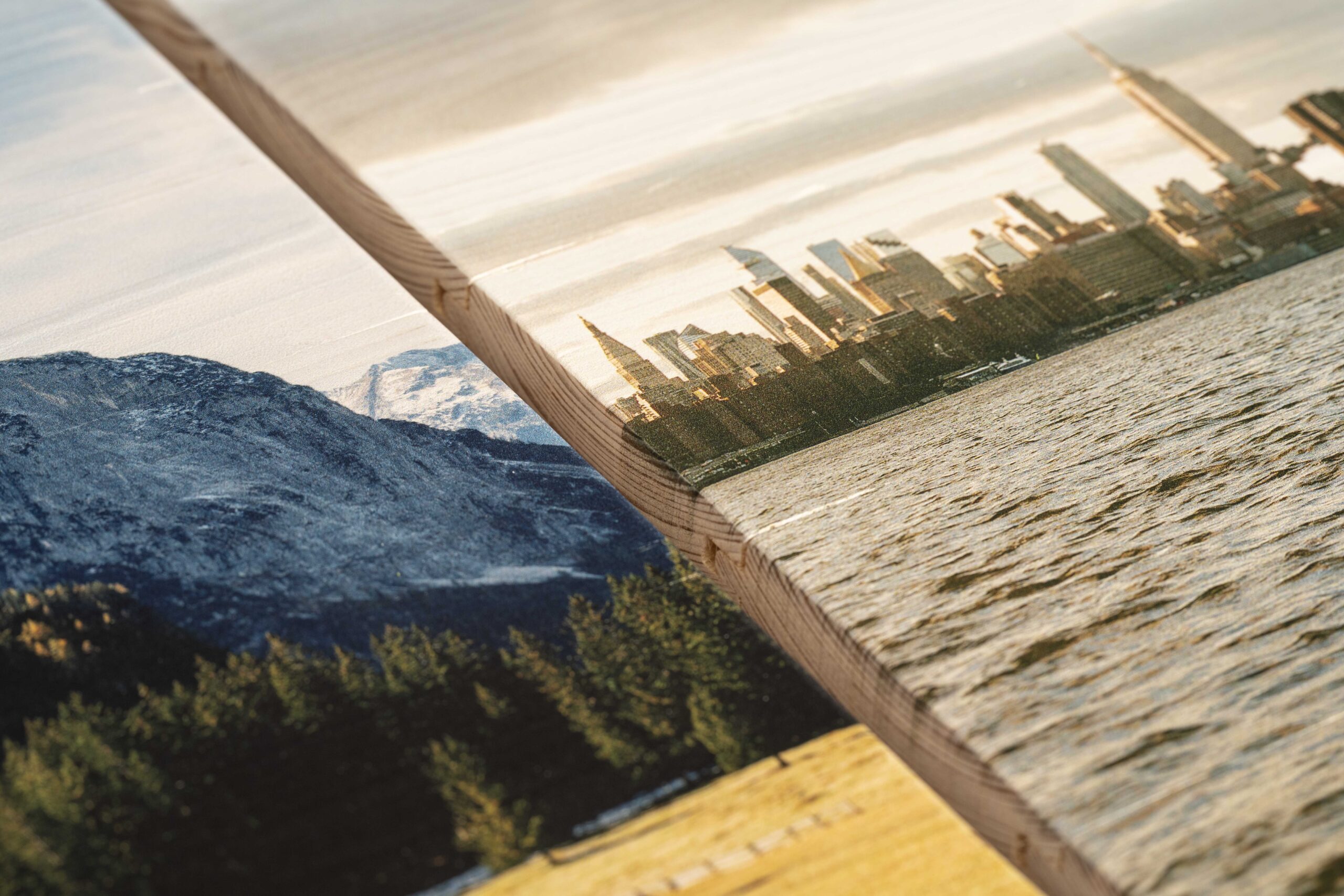 Die Bildränder sind hell und gerade, was dem Druck auf neue Holzlatten ein sauberes und modernes Aussehen verleiht. Du kannst individuell festlegen, ob die Latten Deines Bildes gleichlang oder abgestuft gestaltet sein sollen.