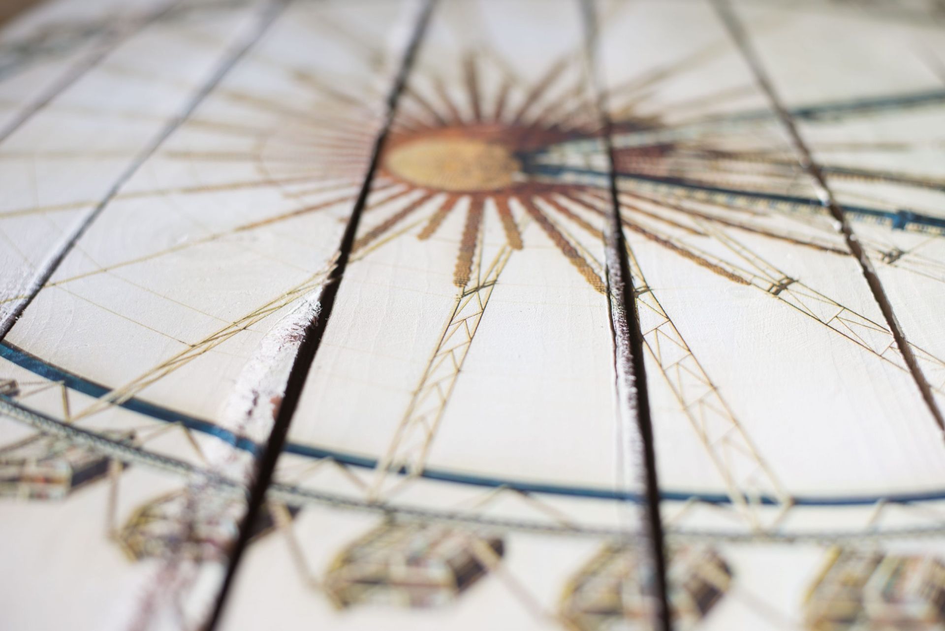 Das Holz für unsere vielseitigen Latten-Drucke stellen wir aus alten Zäunen, Schuppen oder Paletten her. Zuerst bringen wir das Material auf Format und verbinden es dann durch Querstreben, so dass eine möglichst plane Oberfläche entsteht. Hierbei ist zu beachten, dass alte Holzlatten nicht für jedes Motiv geeignet sind: Bedingt durch die Randstruktur der einzelnen Latten entstehen beim Zusammenfügen der einzelnen Hölzer Spalten bis zu einem Zentimeter Breite. Da wir die Holzlatten in einem möglichst originalen Zustand belassen möchten, korrigieren wir Ungleichmäßigkeiten so gut wie nicht.