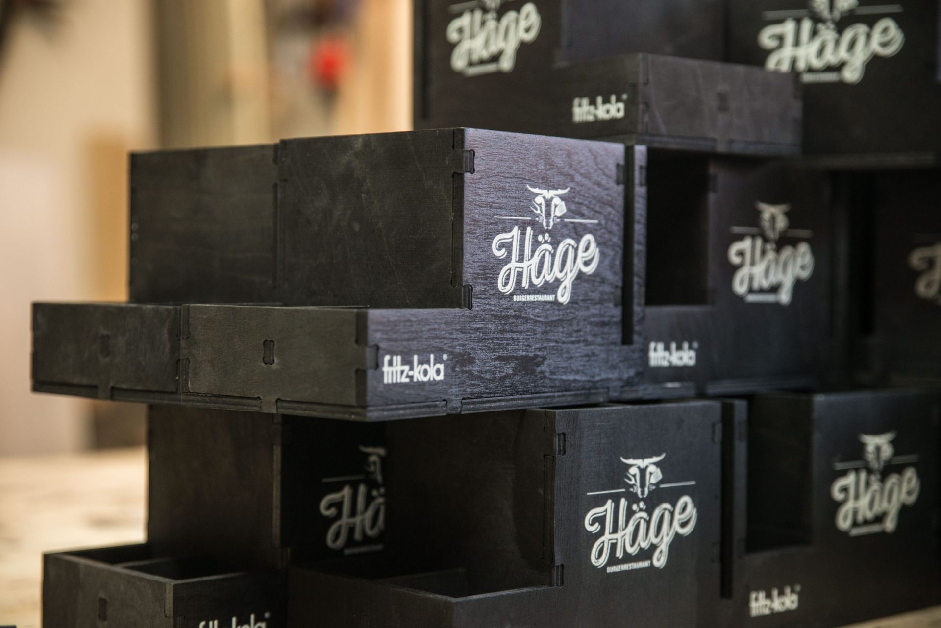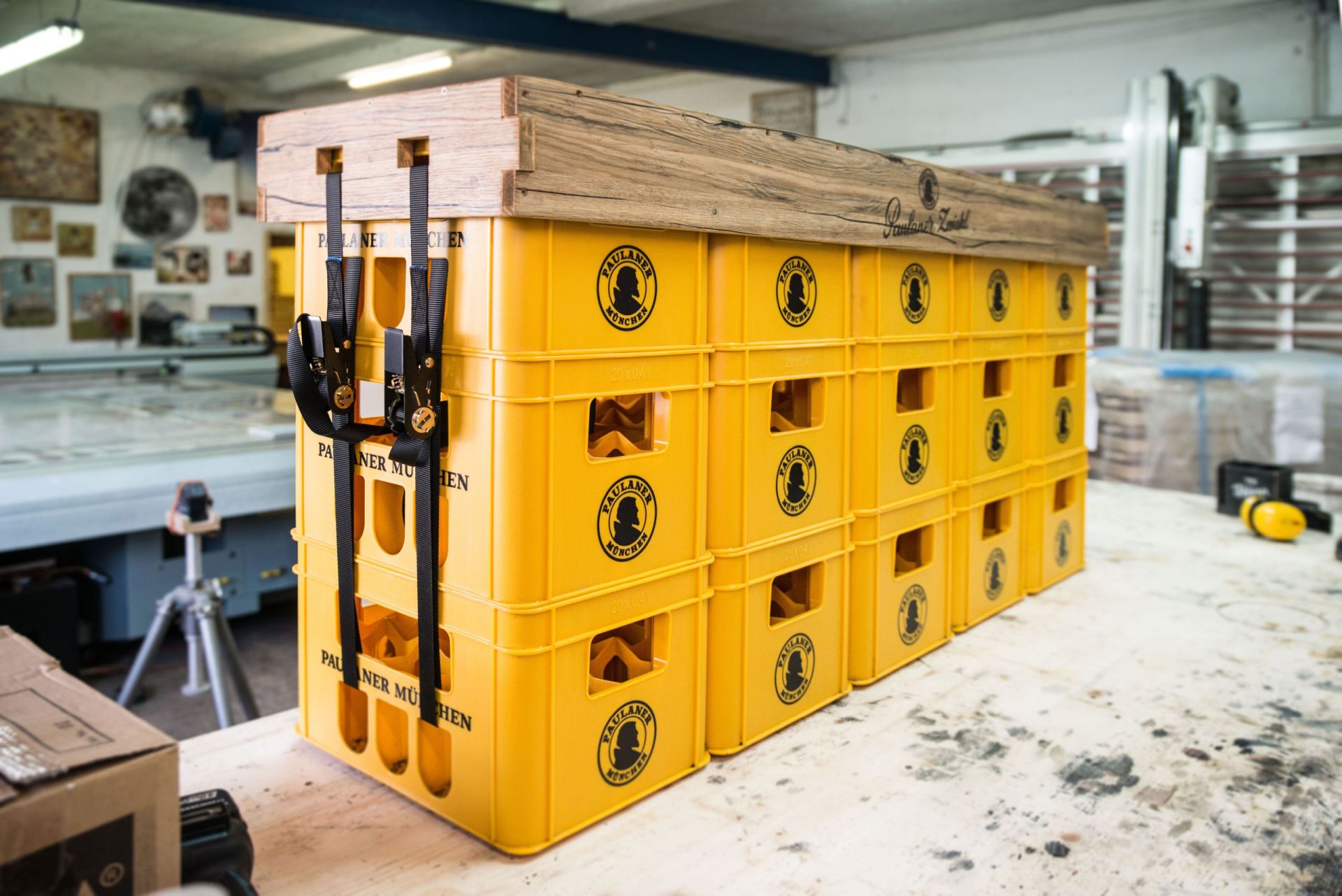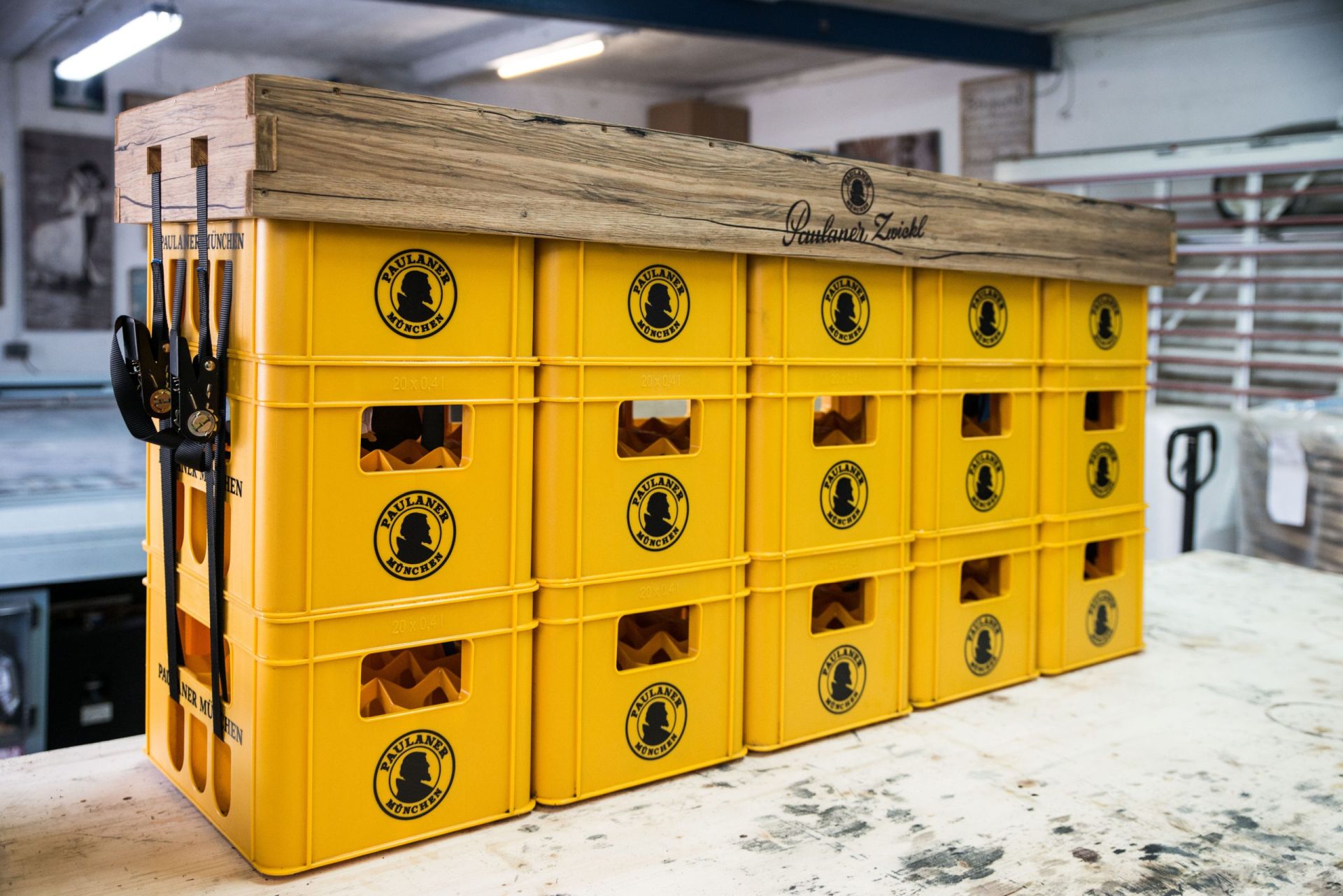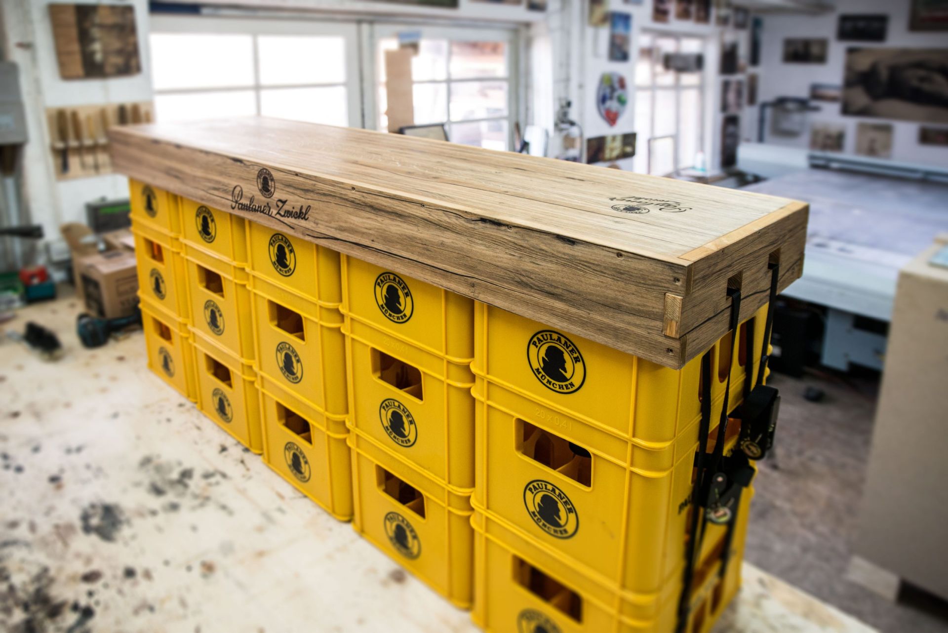 Viele unserer Arbeiten sind jedoch Einzelstücke bzw. -serien, die wir bei uns passgenau als Sonderanfertigungen entsprechend der Kundenwünsche entwickeln und dann auch selbst herstellen. In diesem Artikel möchten wir euch z.B. zeigen, wie wir für fritz-kola gebrandete Ausstattung als Sonderanfertigung für Restaurants gefertigt haben, oder auch eine Theke aus Bierkästen für Paulaner.